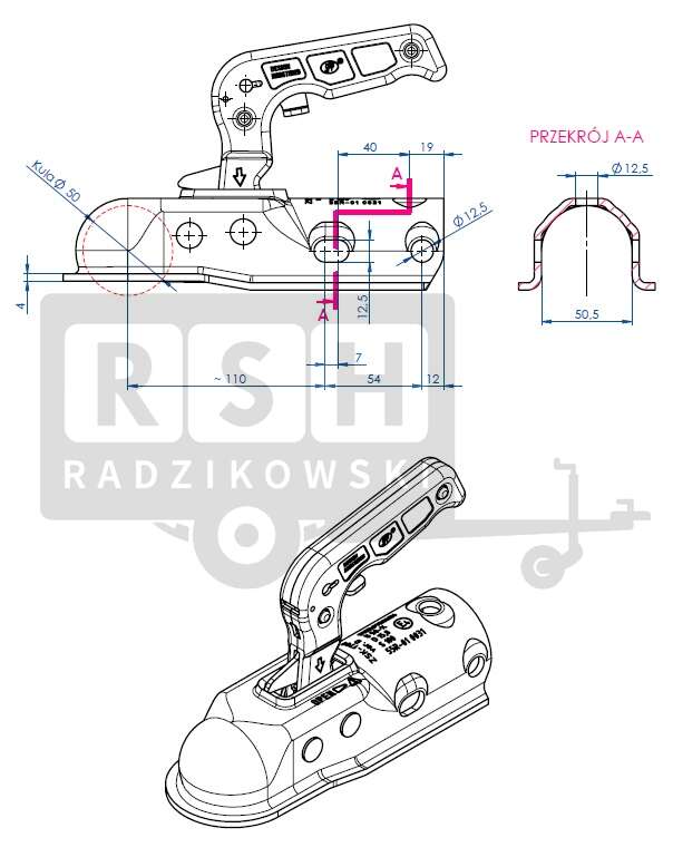 ZACZEP KULOWY SPP STEELPRESS 1700kg RURA 50 mm ZSK-1700D
