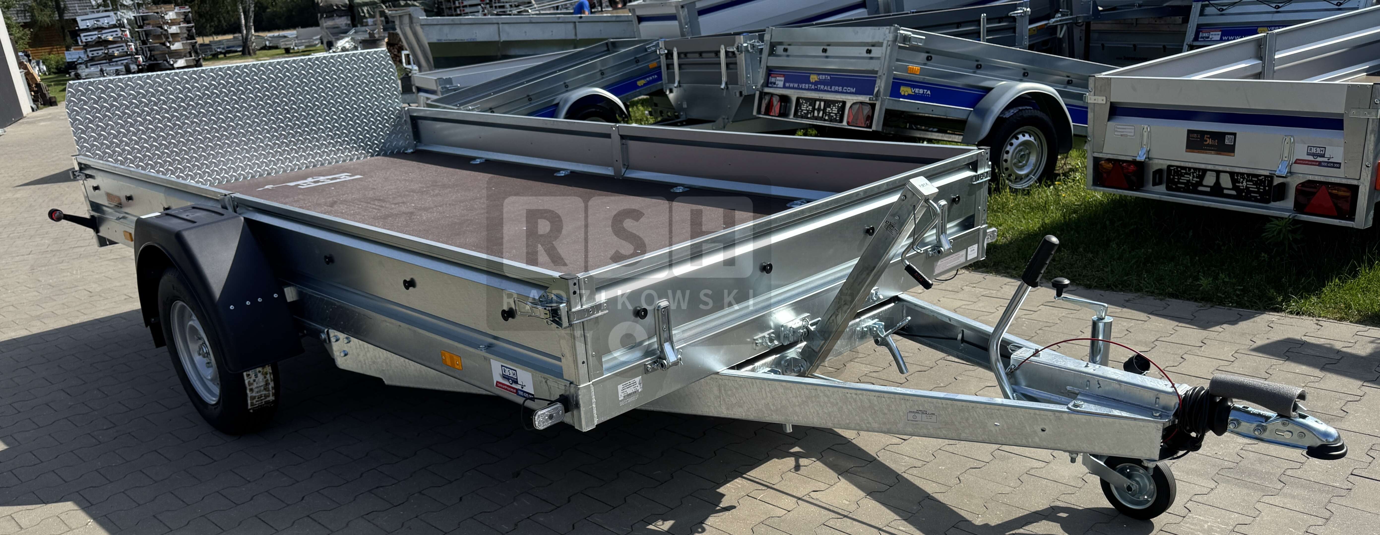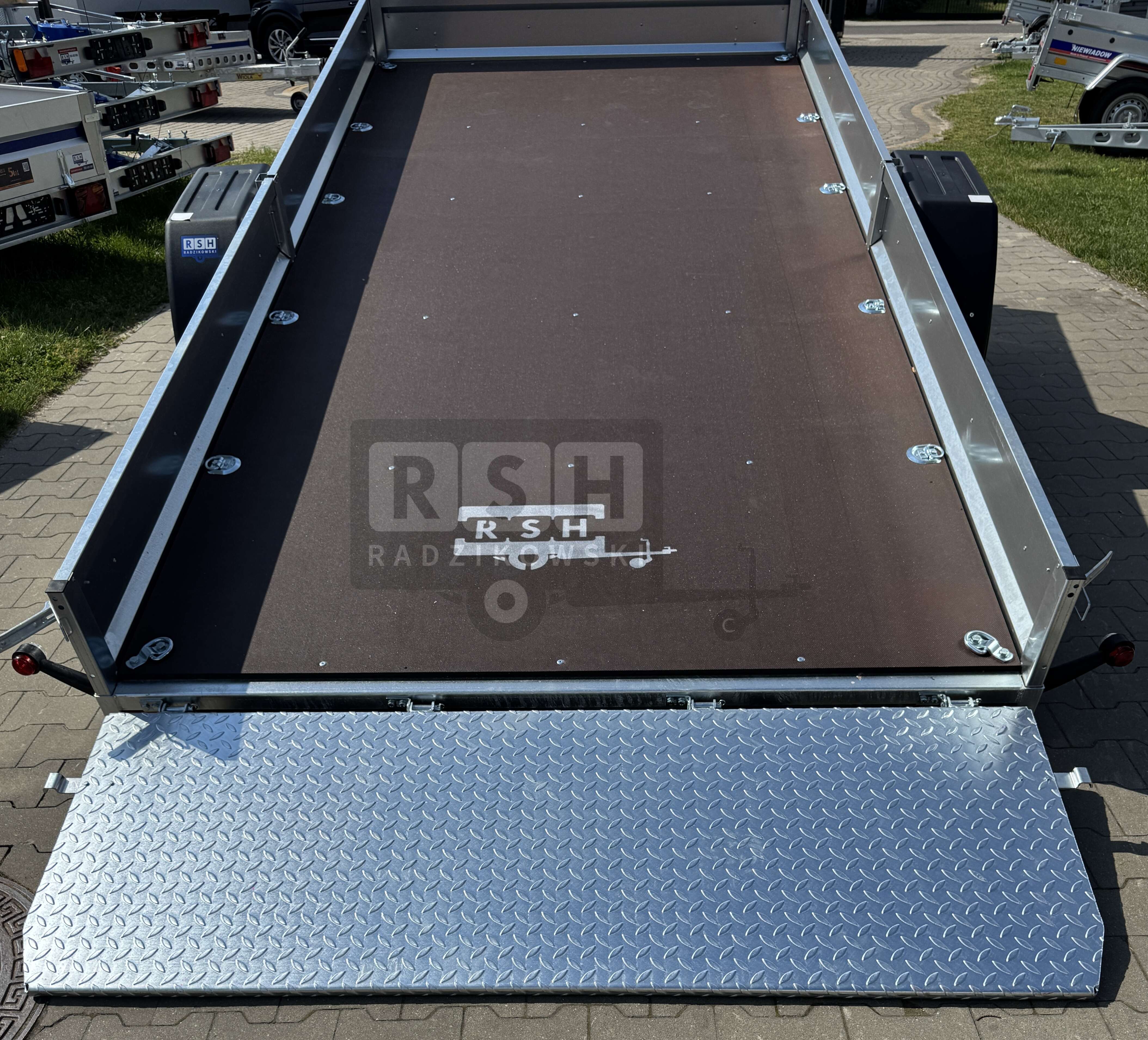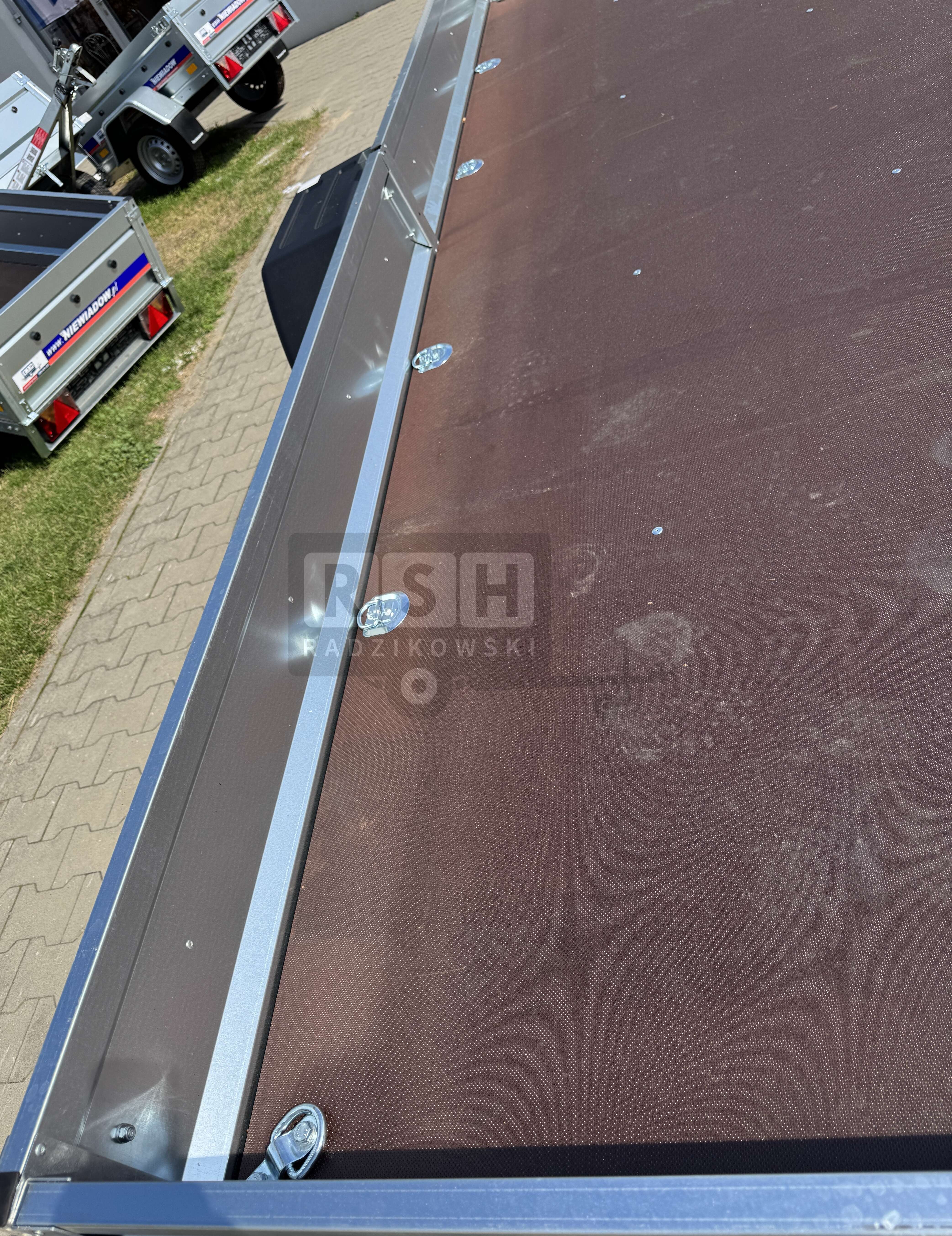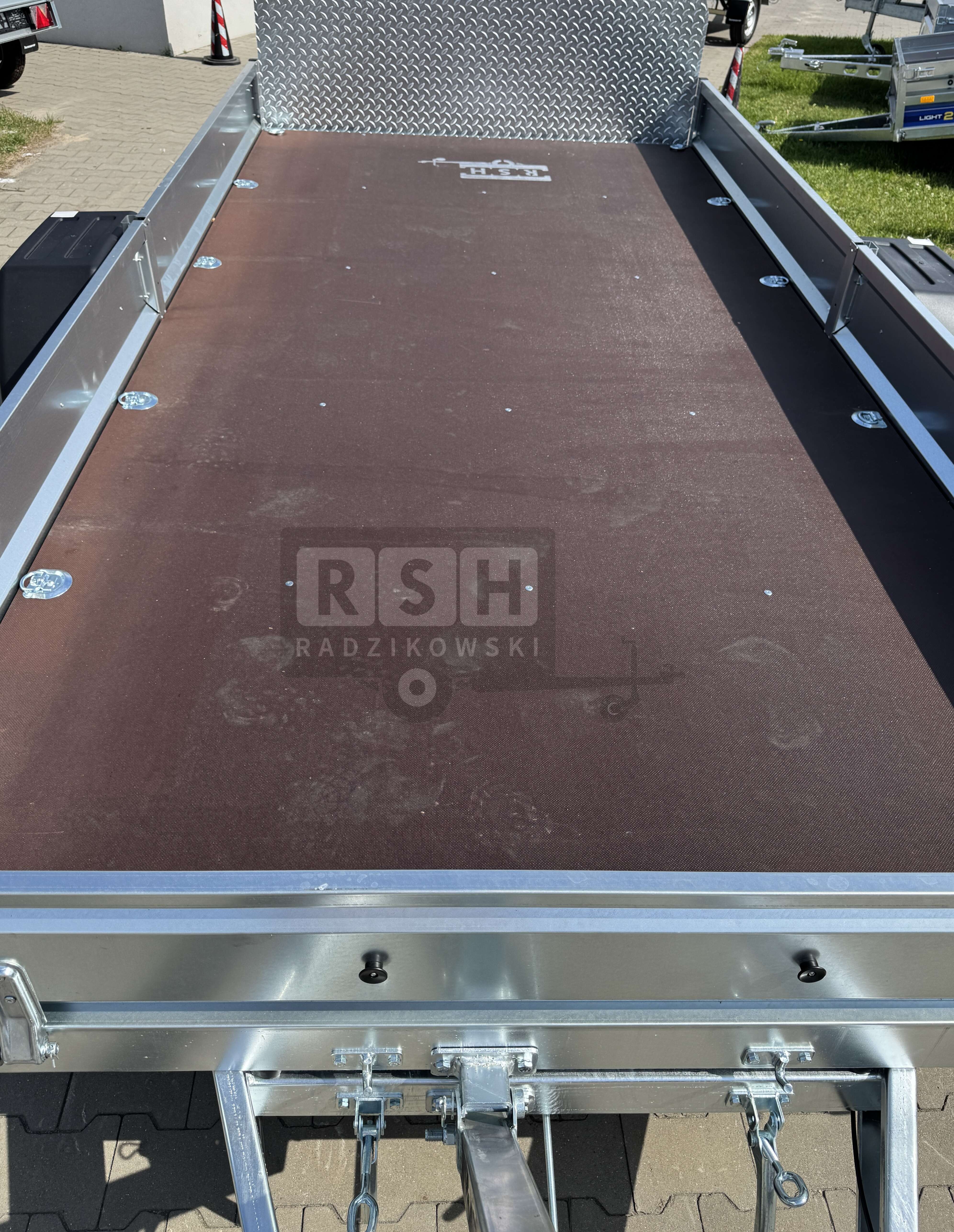• Przyczepa wyposażona w podłogę ze sklejki antypoślizgowej o grubości 15 mm,