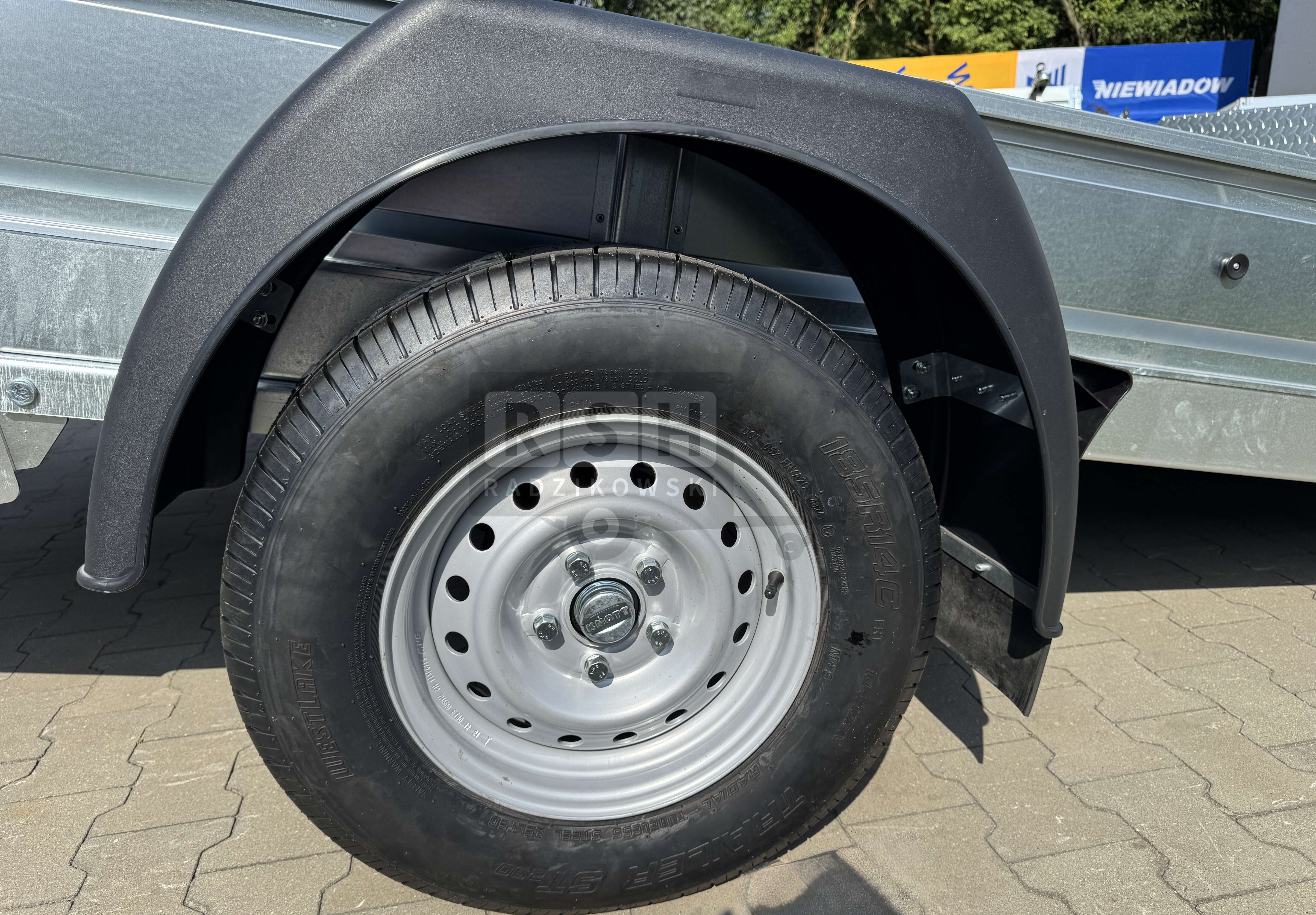 W przyczepach z hamulcem zastosowano niezależne zawieszenie na osiach AL-KO zapewniające bezpieczną i stabilną jazdę.