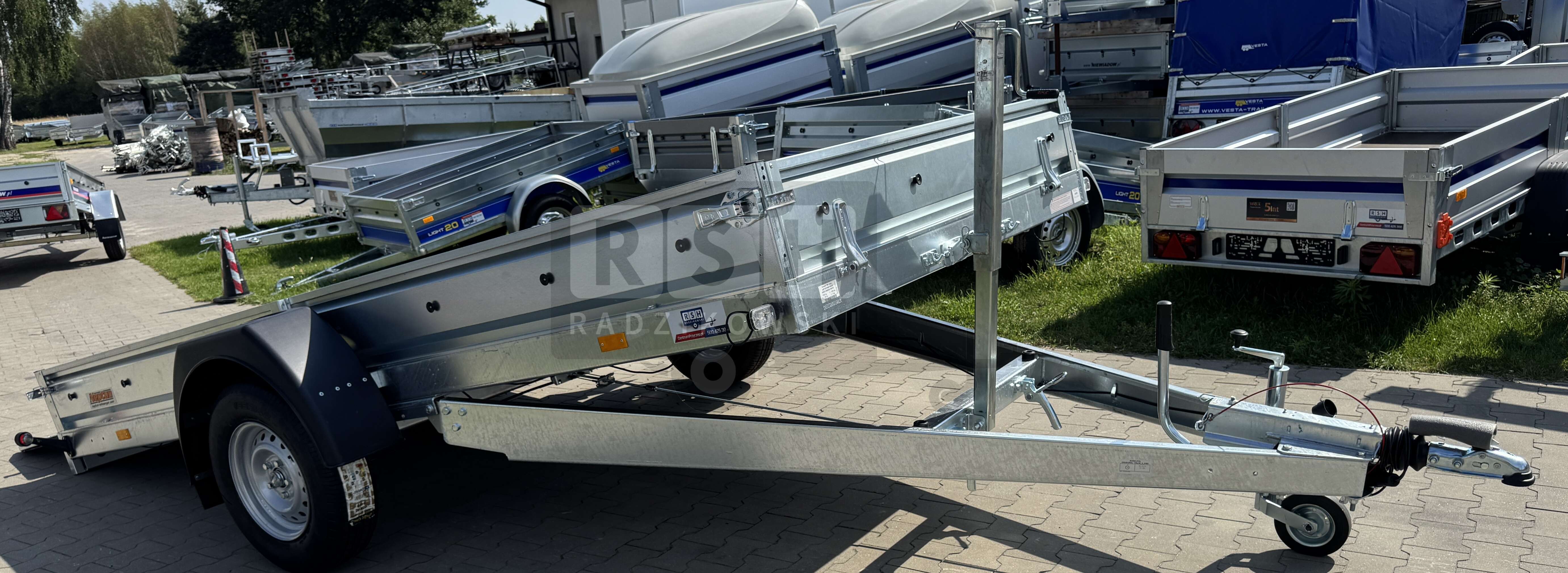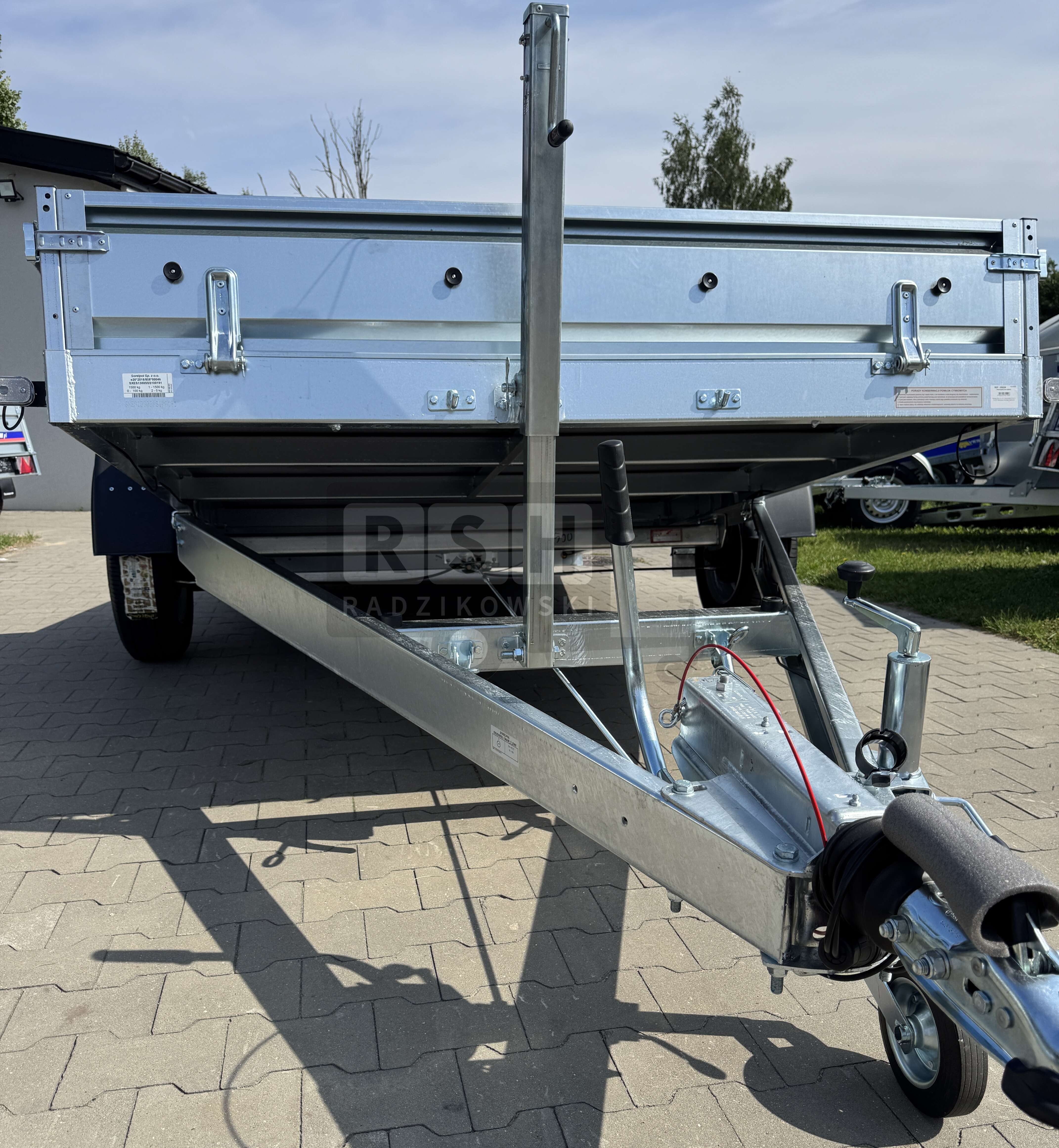 • Dużą wytrzymałość konstrukcji zapewnia całkowicie spawana rama, zimnogięte podłużnice ramy oraz 4 poprzeczne belki oraz mocny dyszel strzałkowy spawany. Wszystkie elementy cynkowane ogniowo,