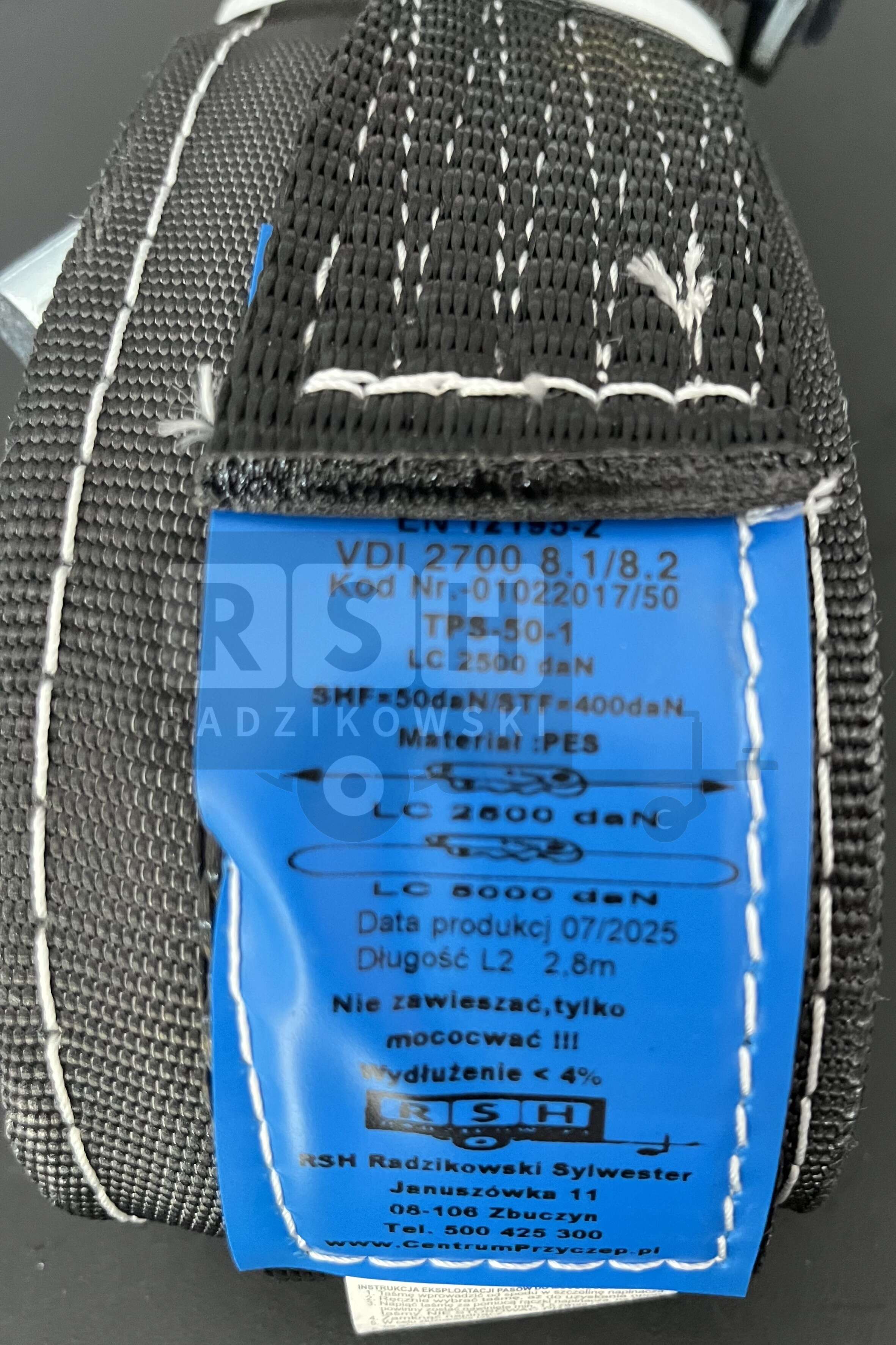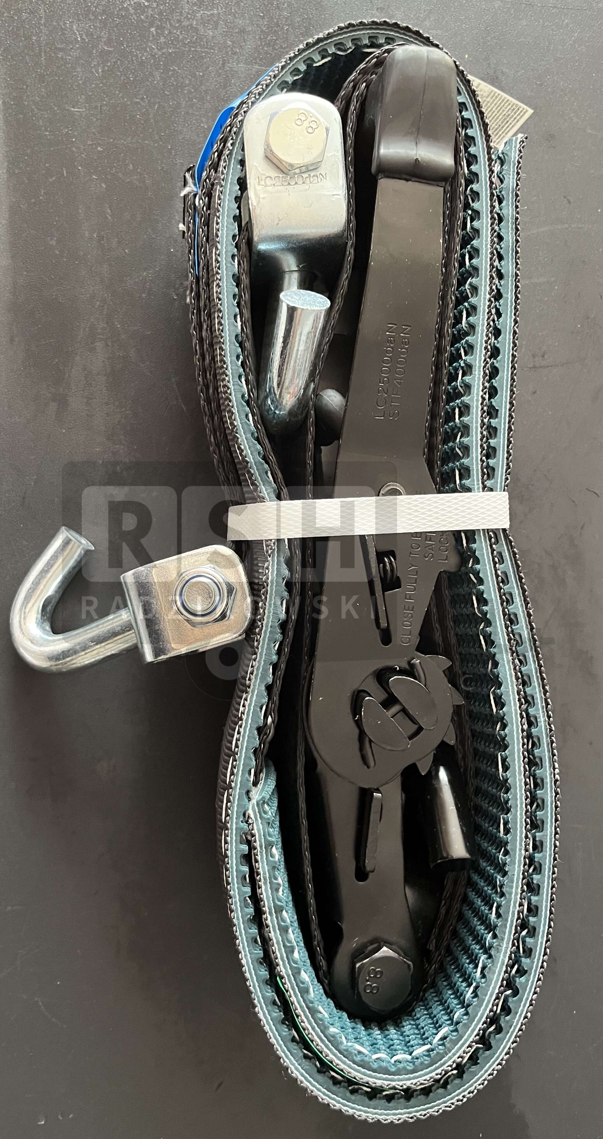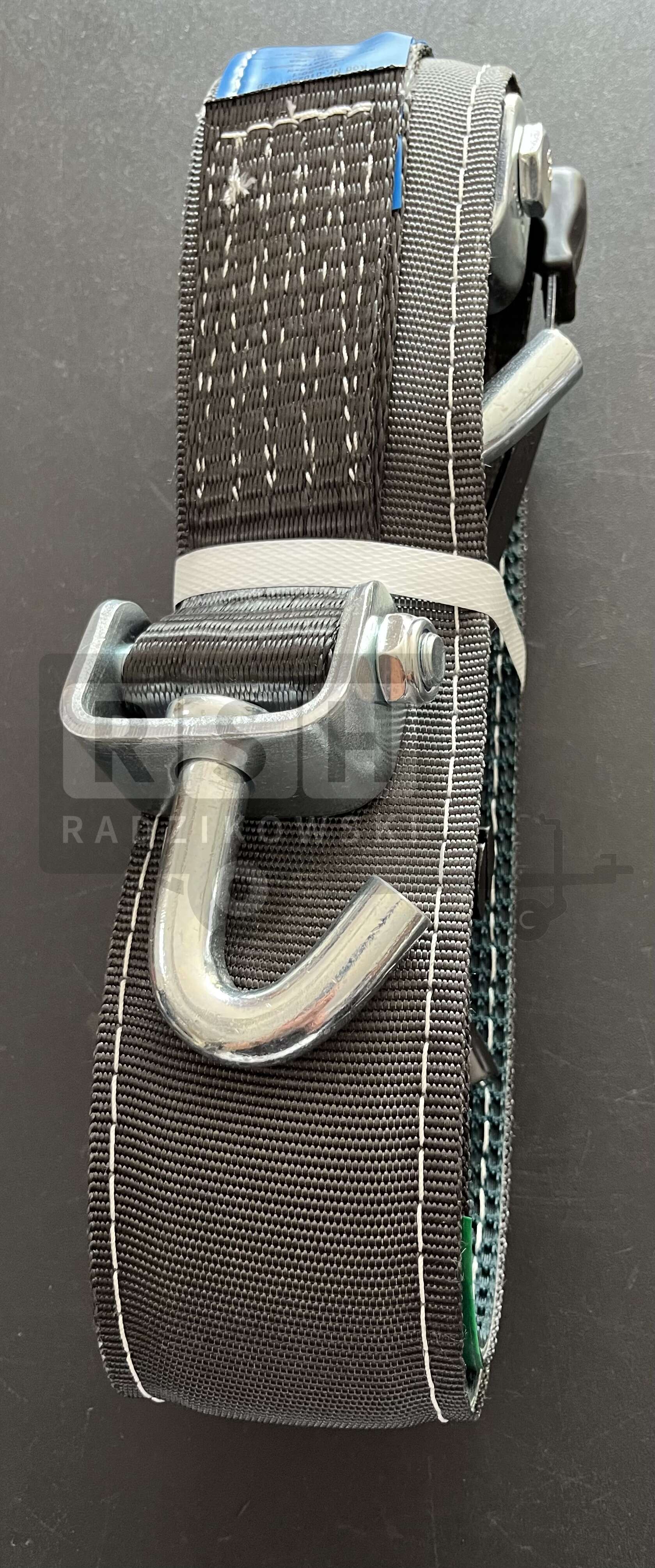 • PAS TRANSPORTOWY DO LAWETY LOHR 5T 50MM 3-PUNKTOWY Z NAPINACZEM MALOWANYM PROSZKOWO I OSŁONĄ TRAWKĄ 120CM HAK OBROTOWY