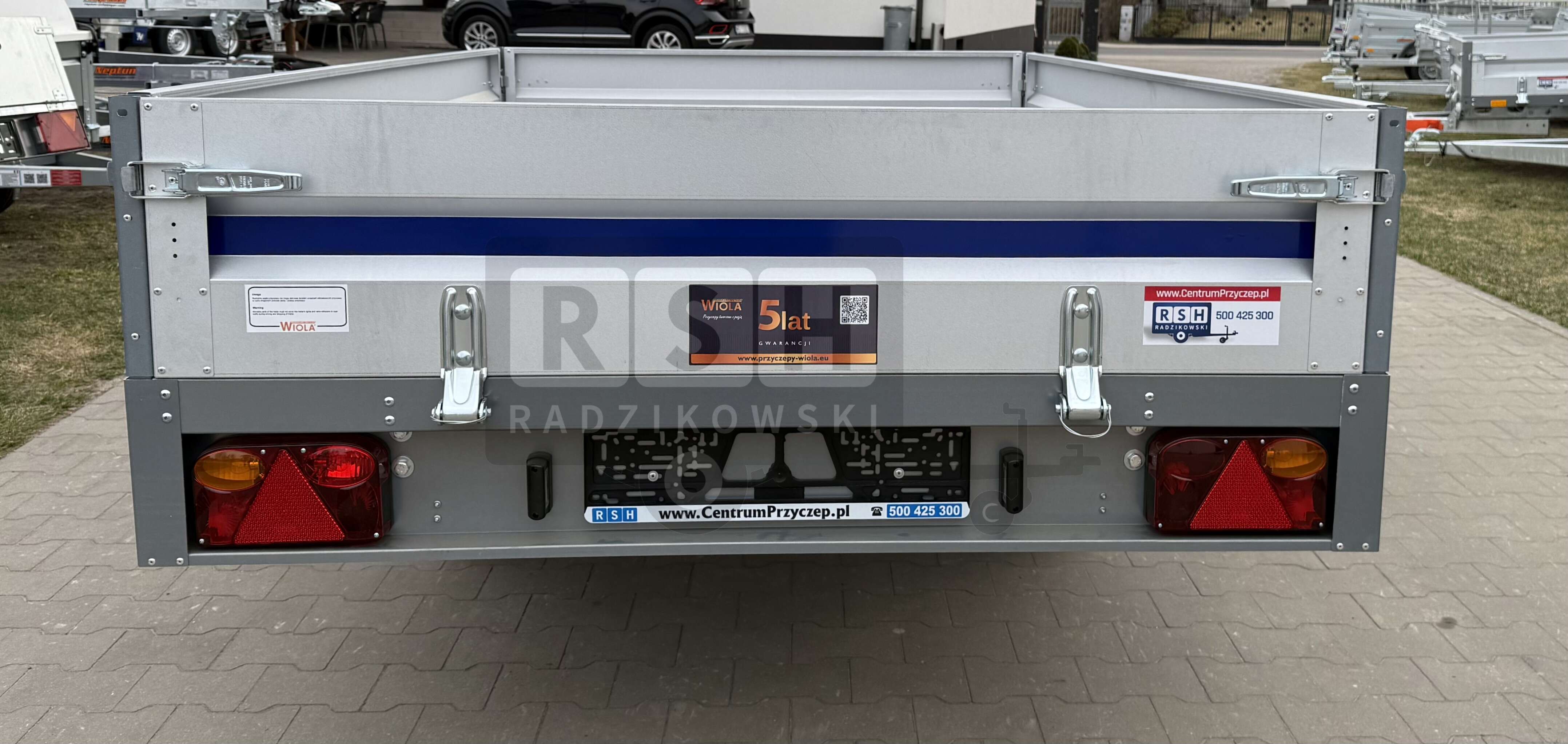 Przyczepka Samochodowa WIOLA Silezia z plandeką i stelażem H-150cm 2,92x1,42m, DMC:750kg
