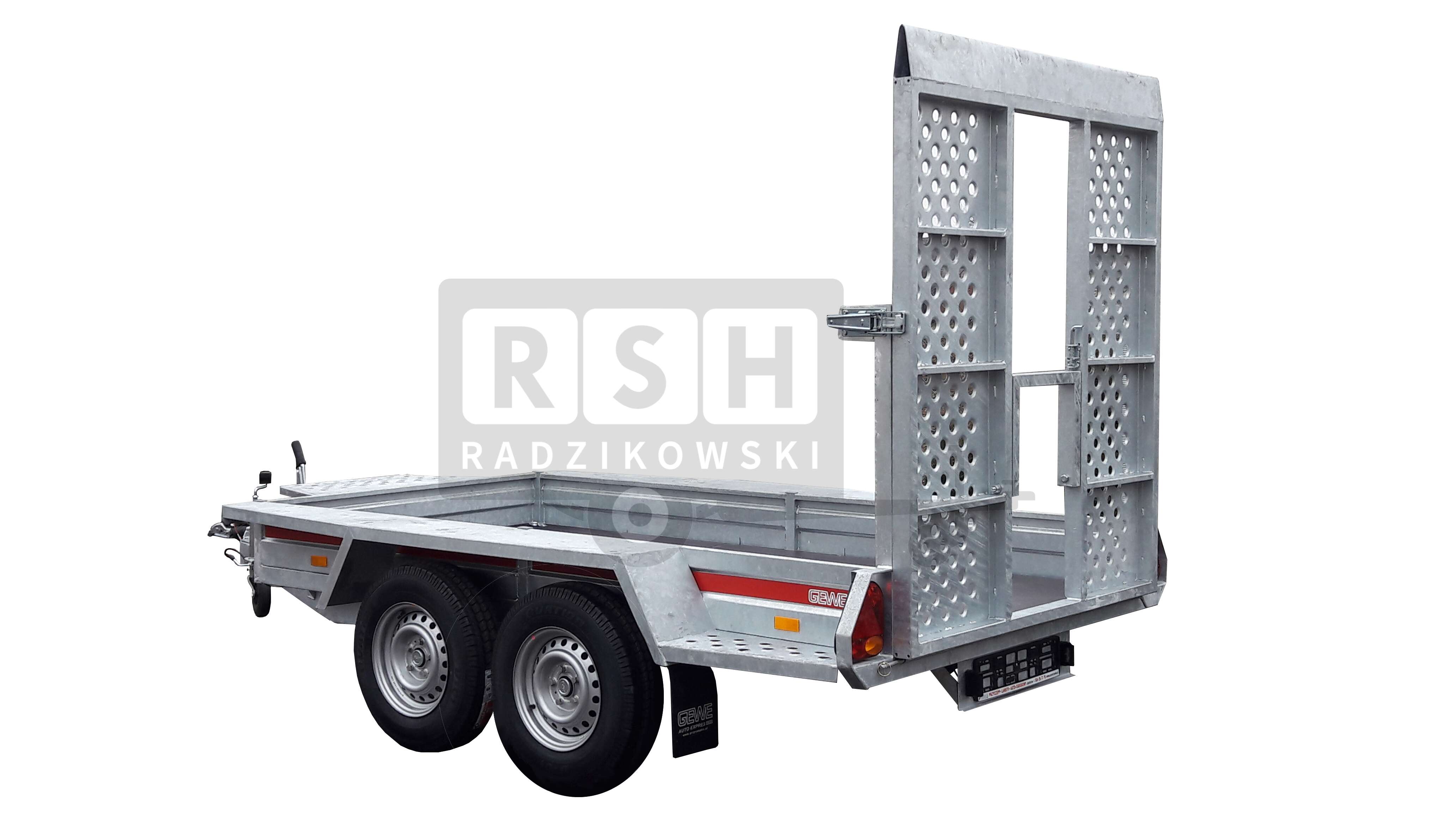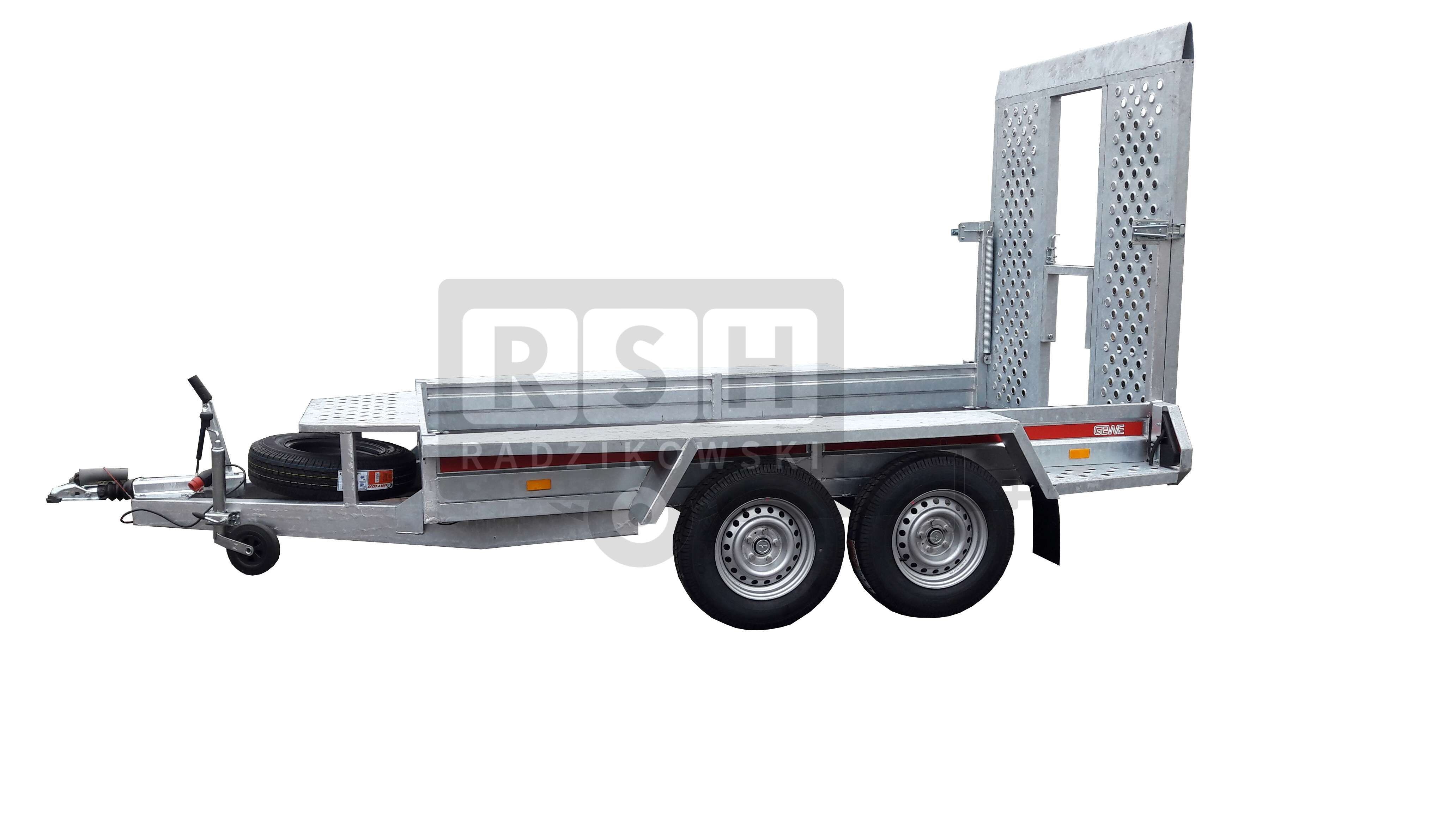 Przyczepa do przewozu minikoparki GEWE typ P3500 399x148 cm DMC: 2700 kg