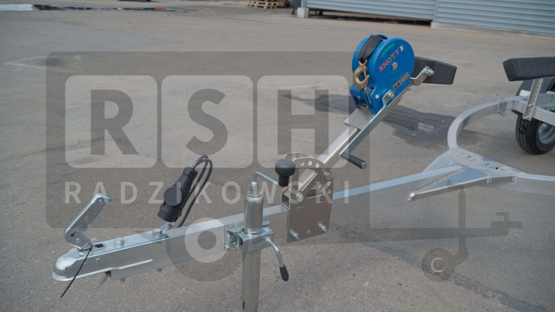 - przyciągarka ręczna KNOTT 450 kg z pasem, montowana na dziobnicy