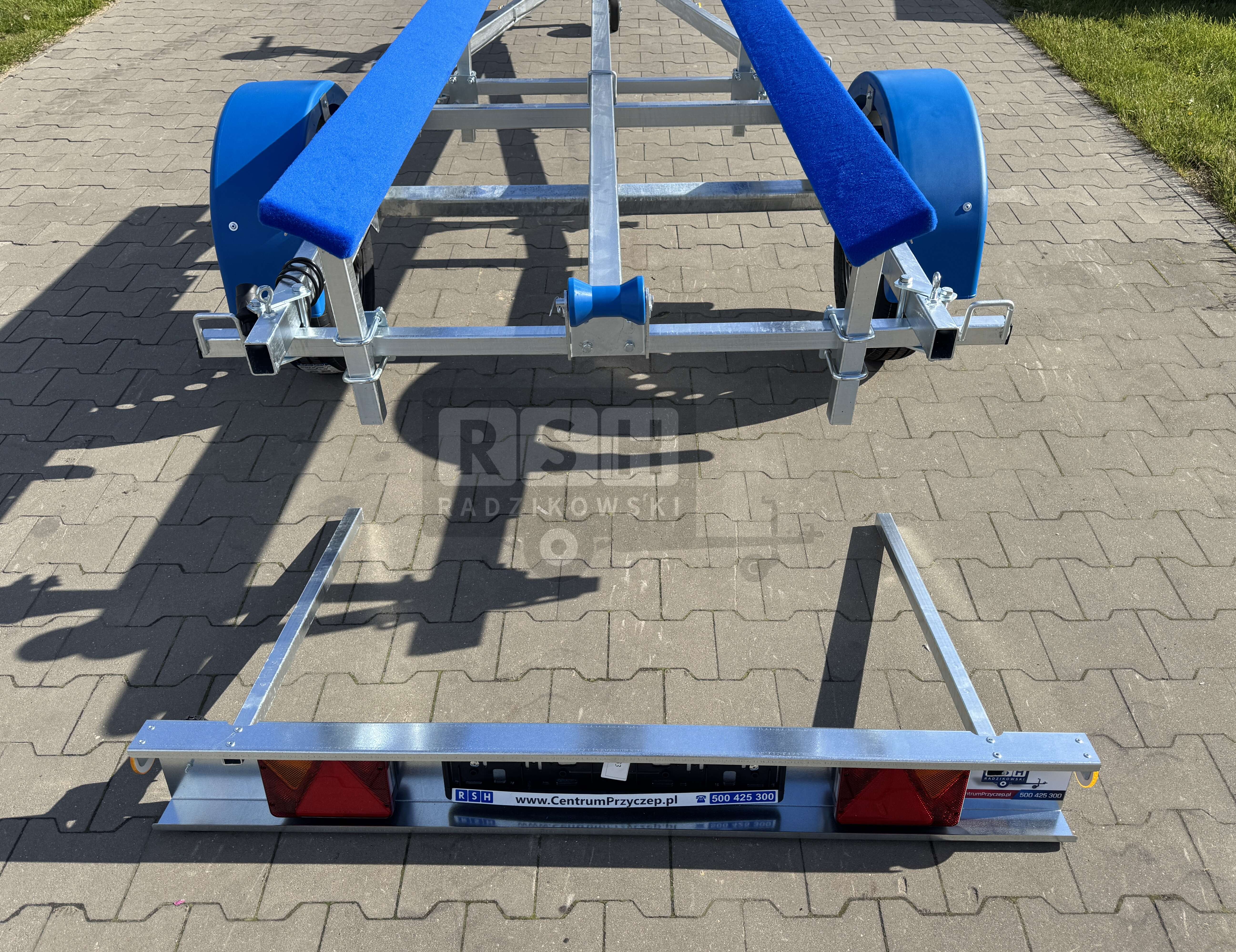 • Model: Przyczepa podłodziowa jednoosiowa z regulowanymi podporami bocznymi