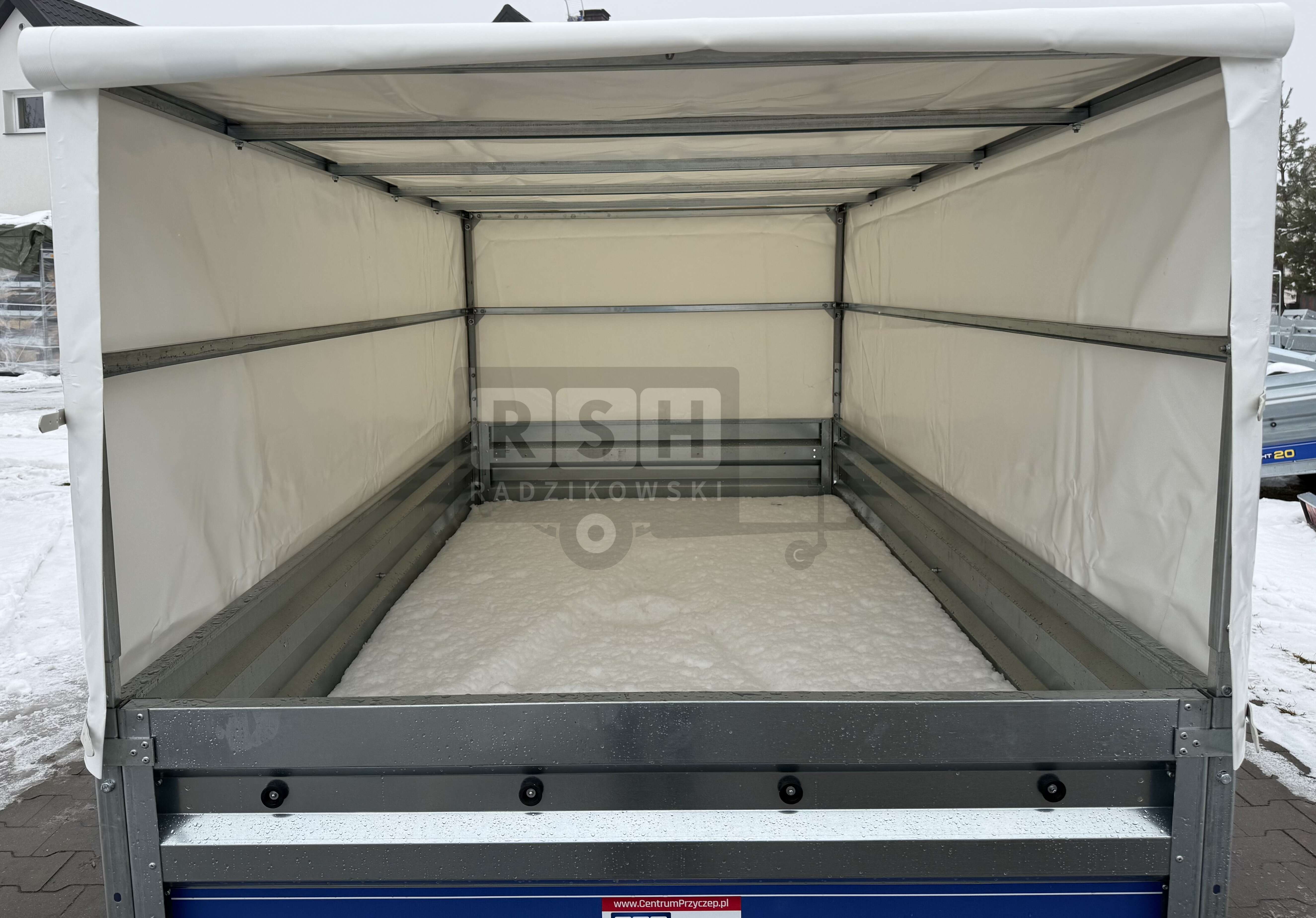 Przyczepka Samochodowa Niewiadów BD7530YU z plandeką i stelażem H-160cm 3,04x1,50m, DMC: 750kg RESOR + AMORTYZATOR