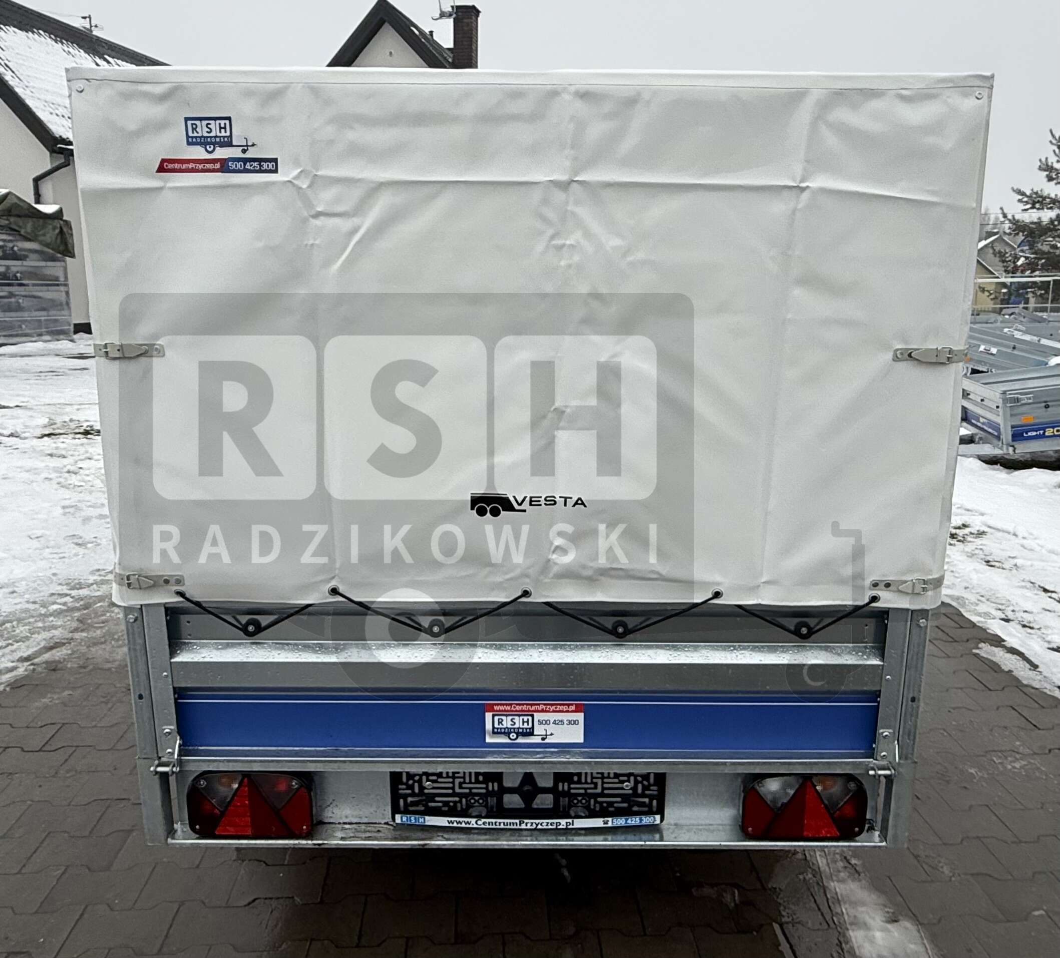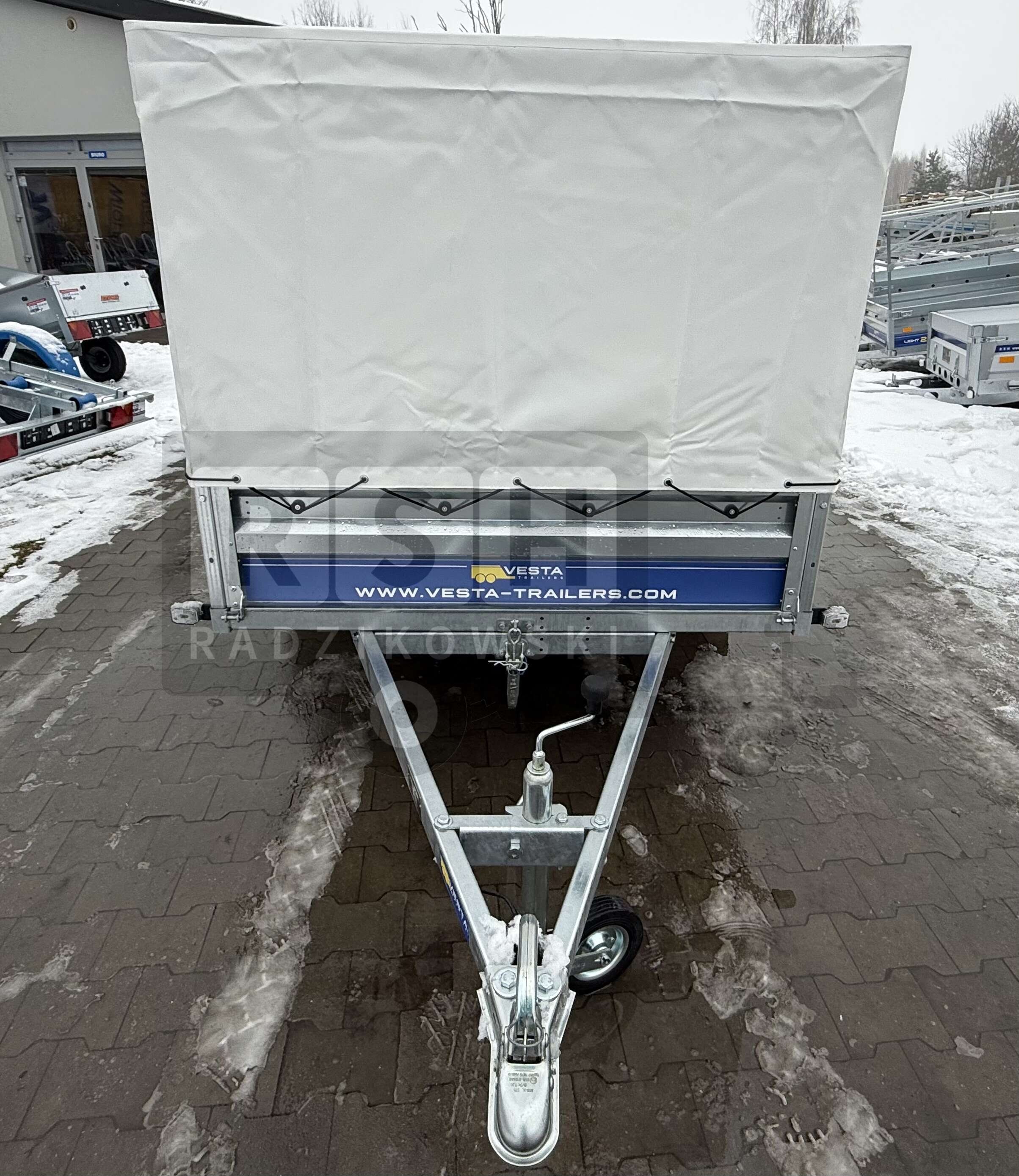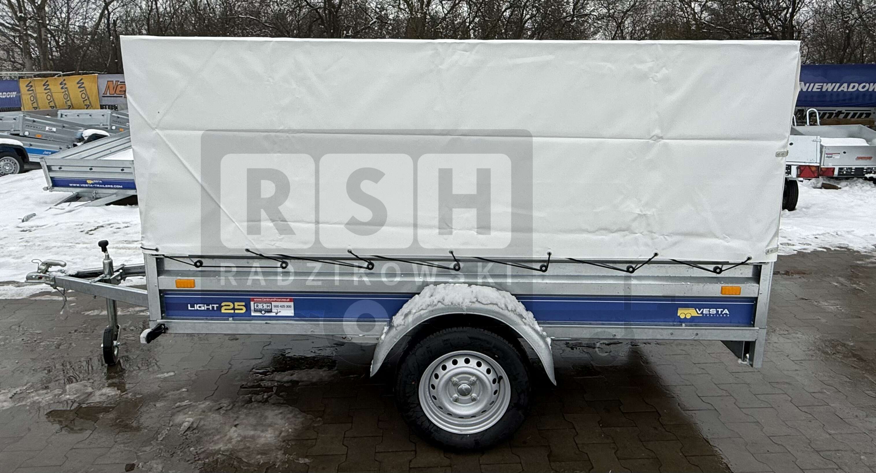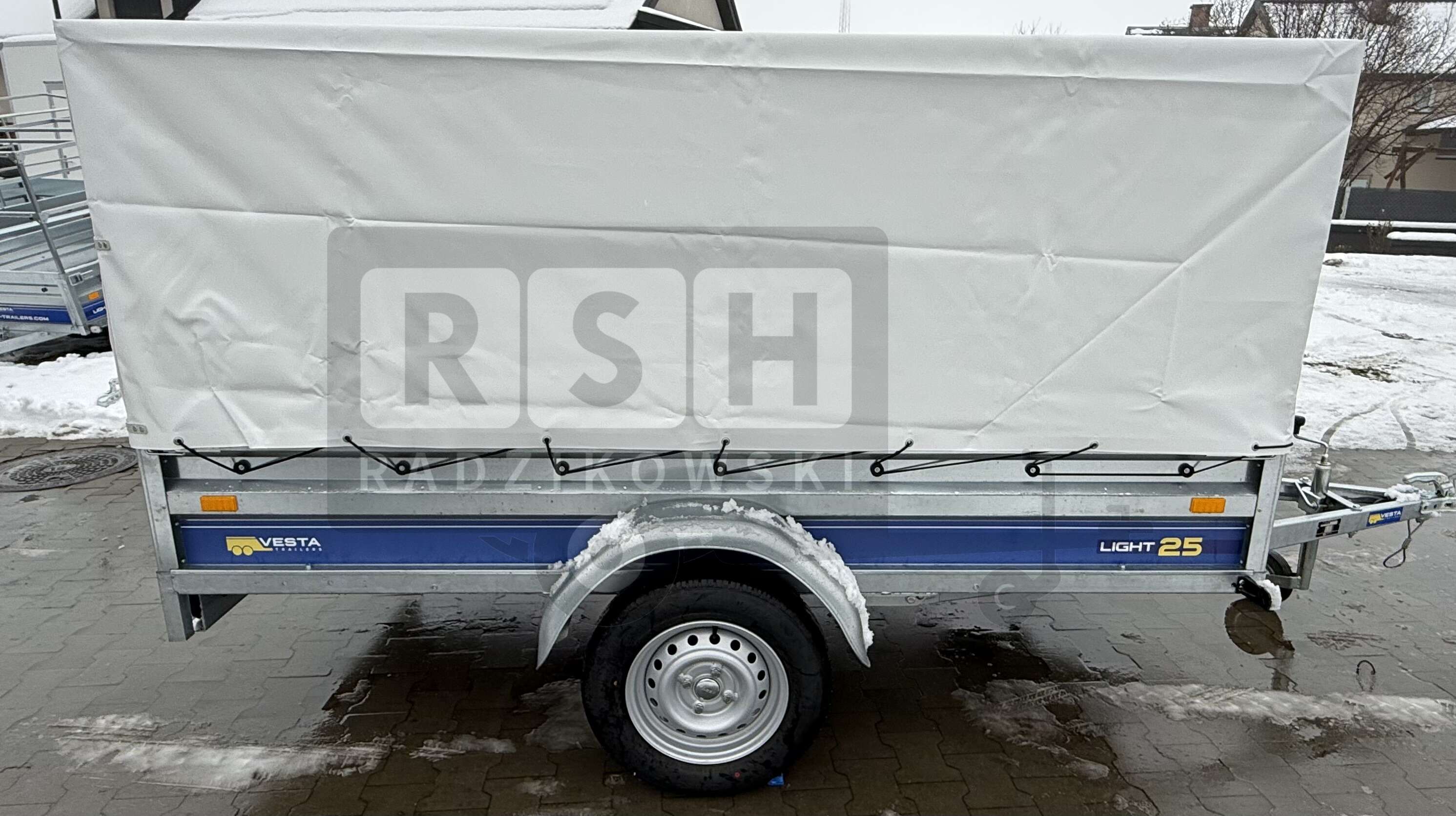 Przyczepa samochodowa lekka 1-osiowa z plandeką i stelażem H-112 CM251x135x37 cm DMC: 750 kg VESTA typ LIGHT 25