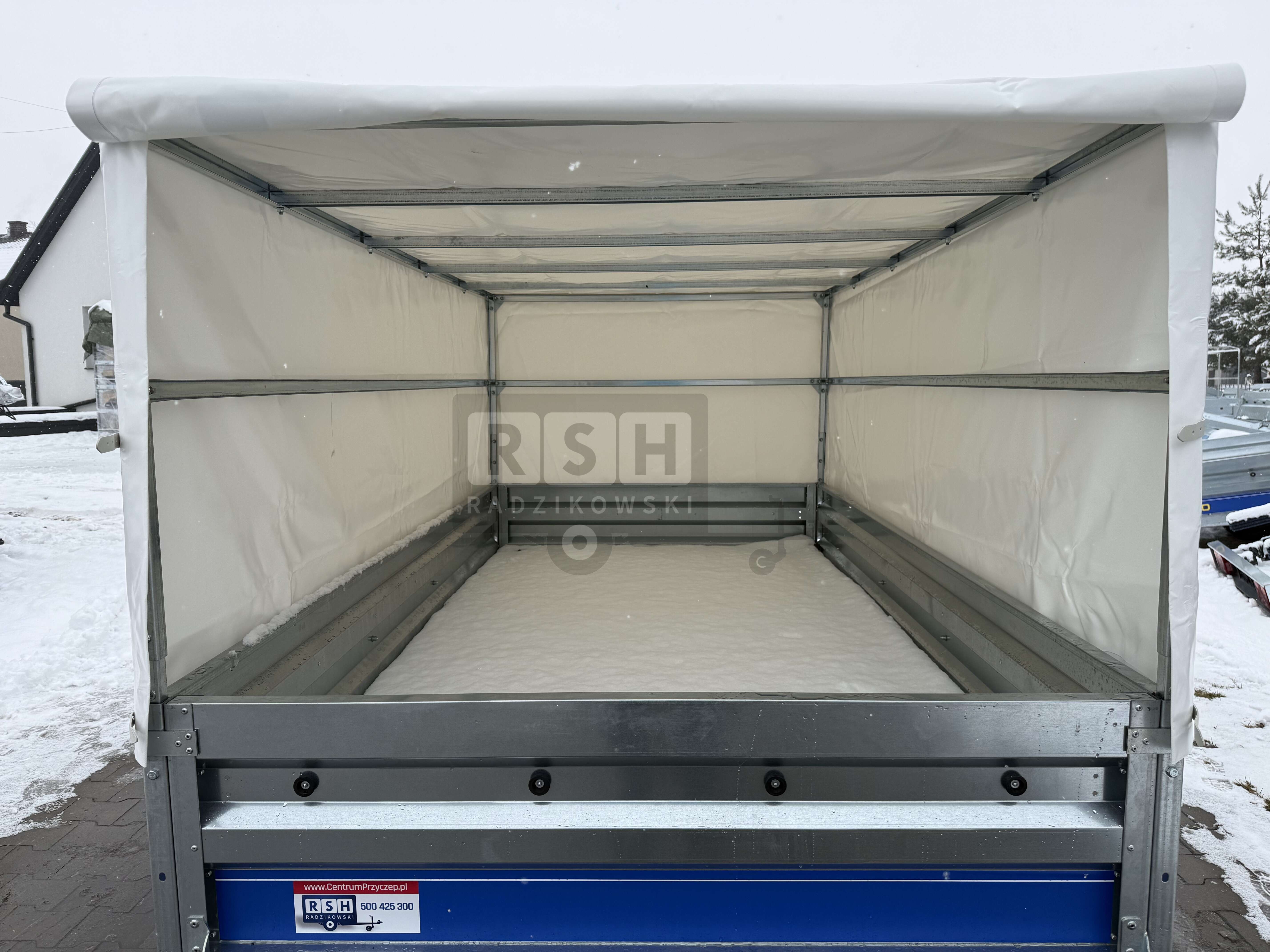 Przyczepka samochodowa TANDEM Vesta 232x131 burty 37 cm SPAWANA z plandeką i stelażem H-115 CM Light23DA