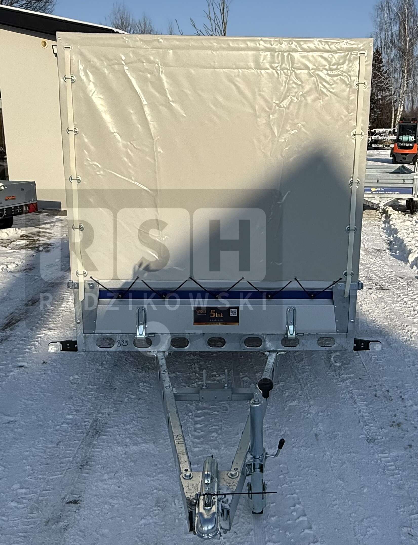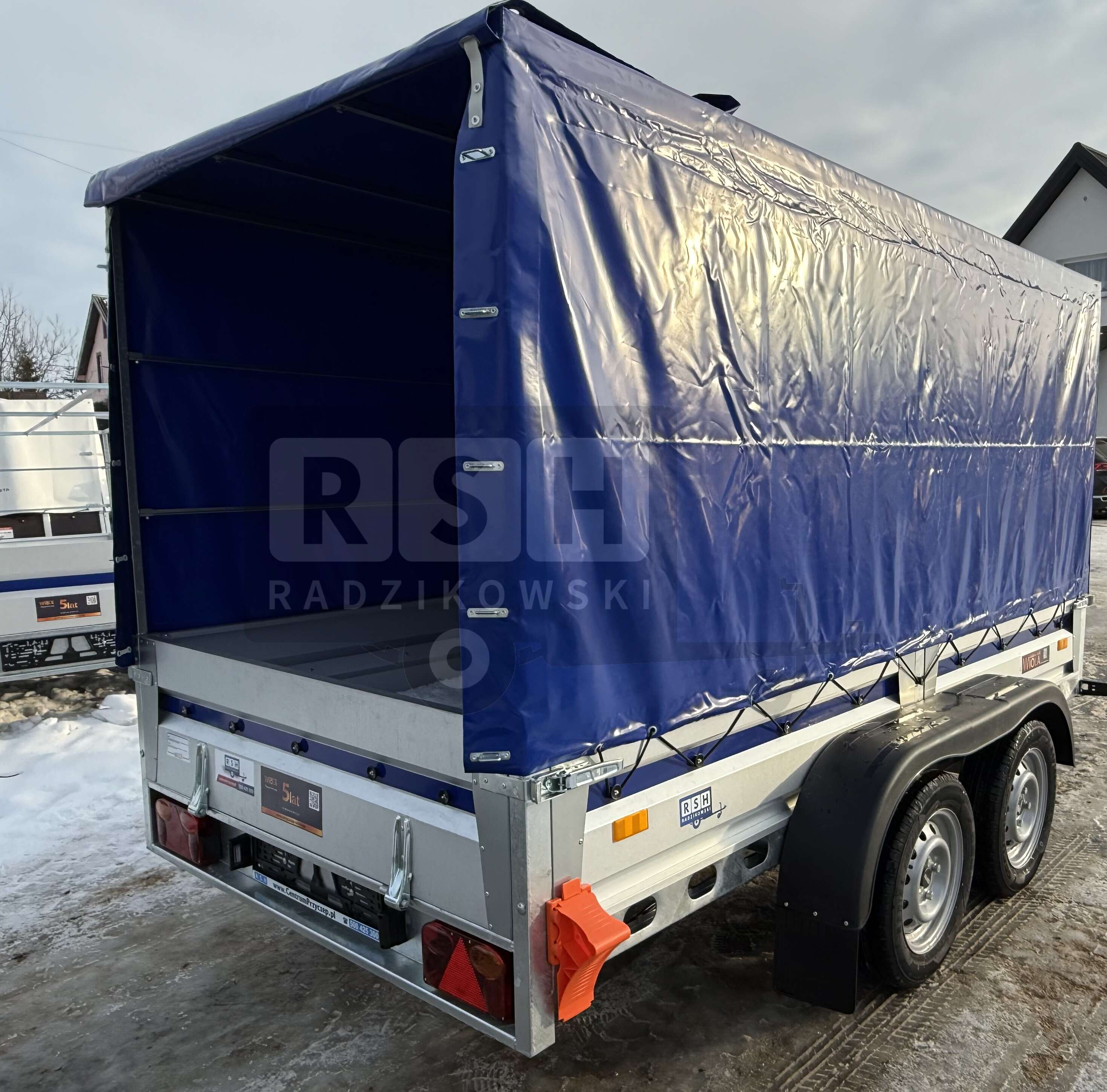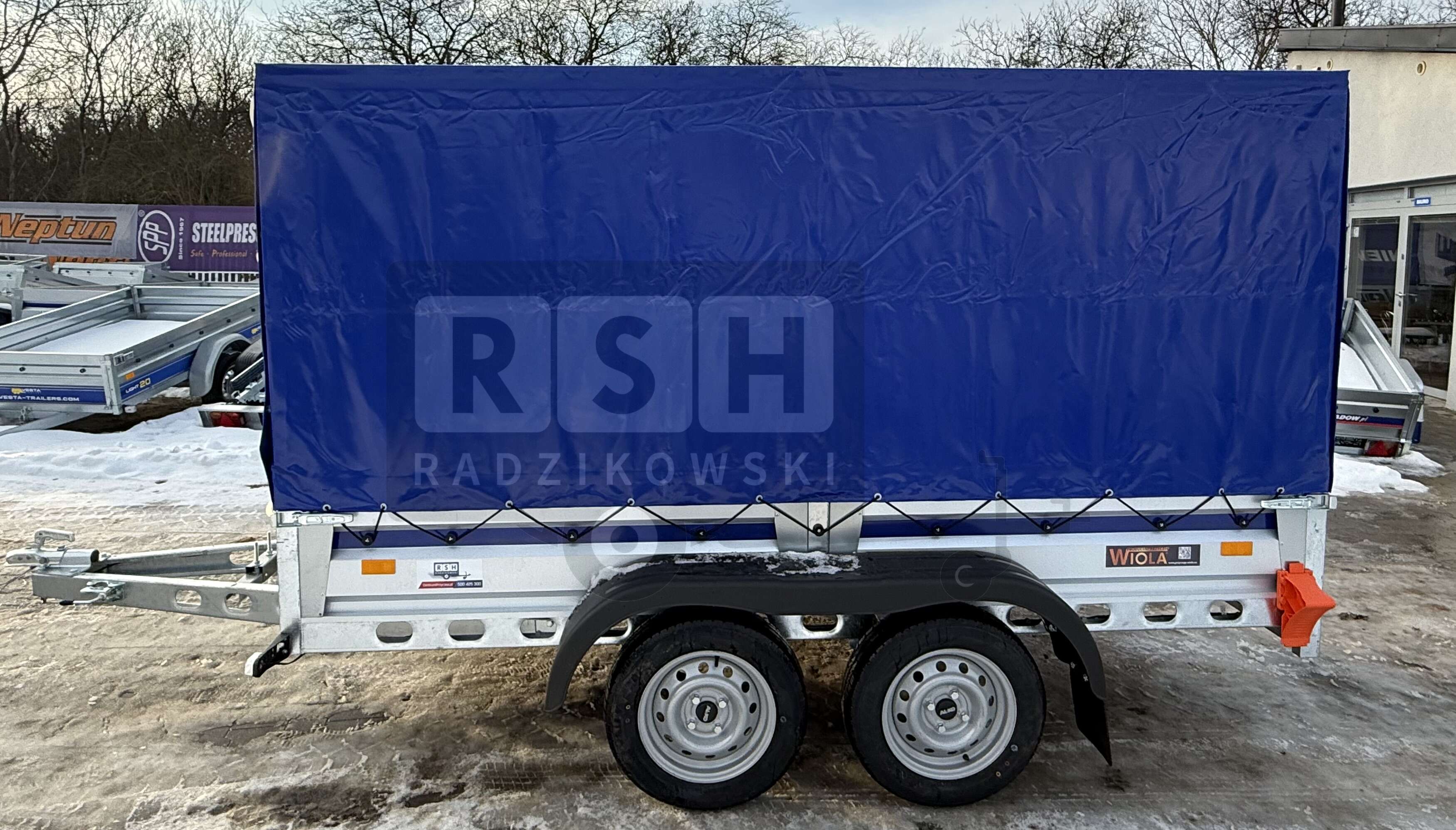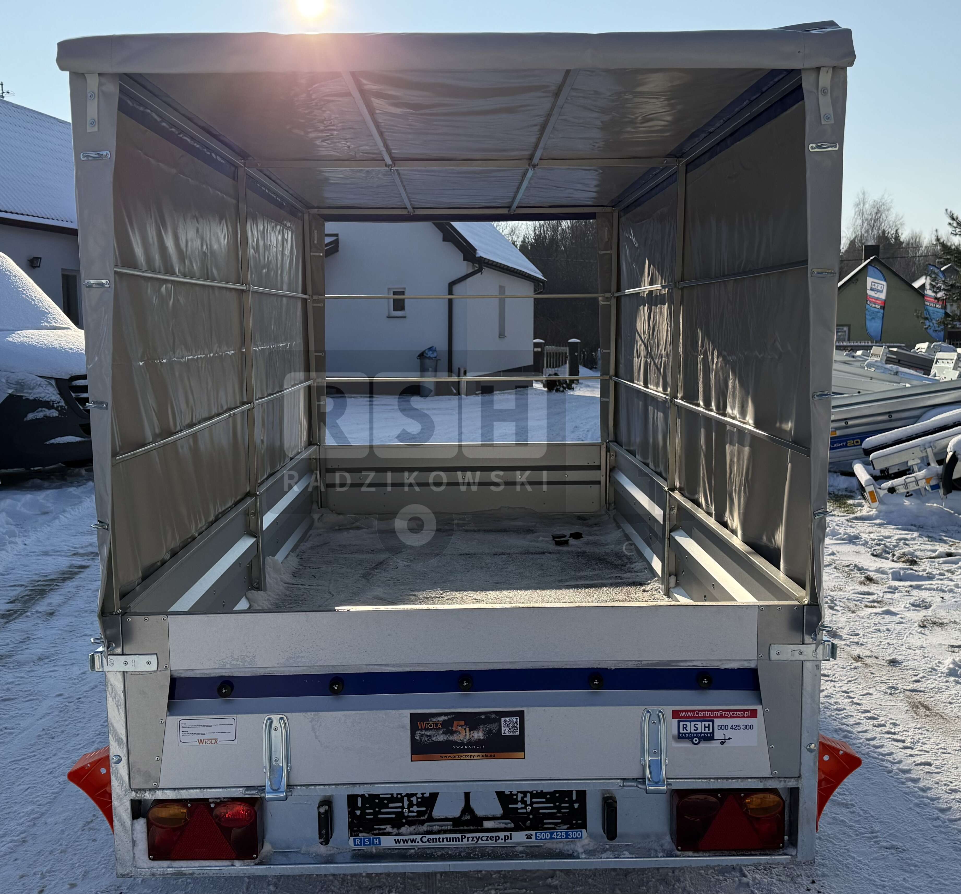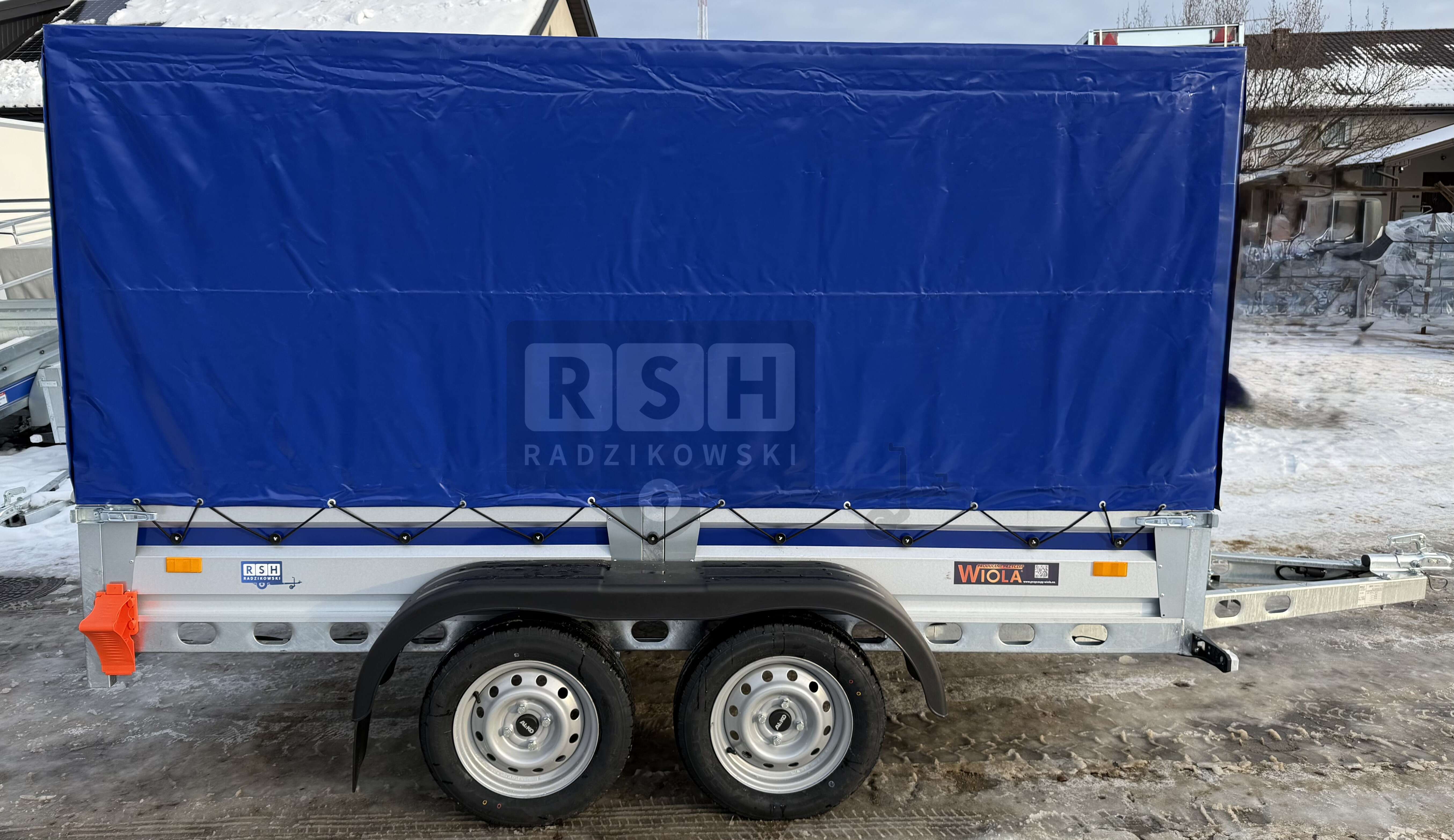 Przyczepka Samochodowa WIOLA Silezia z plandeką i stelażem H-150cm 2,92x1,42m, DMC:750kg