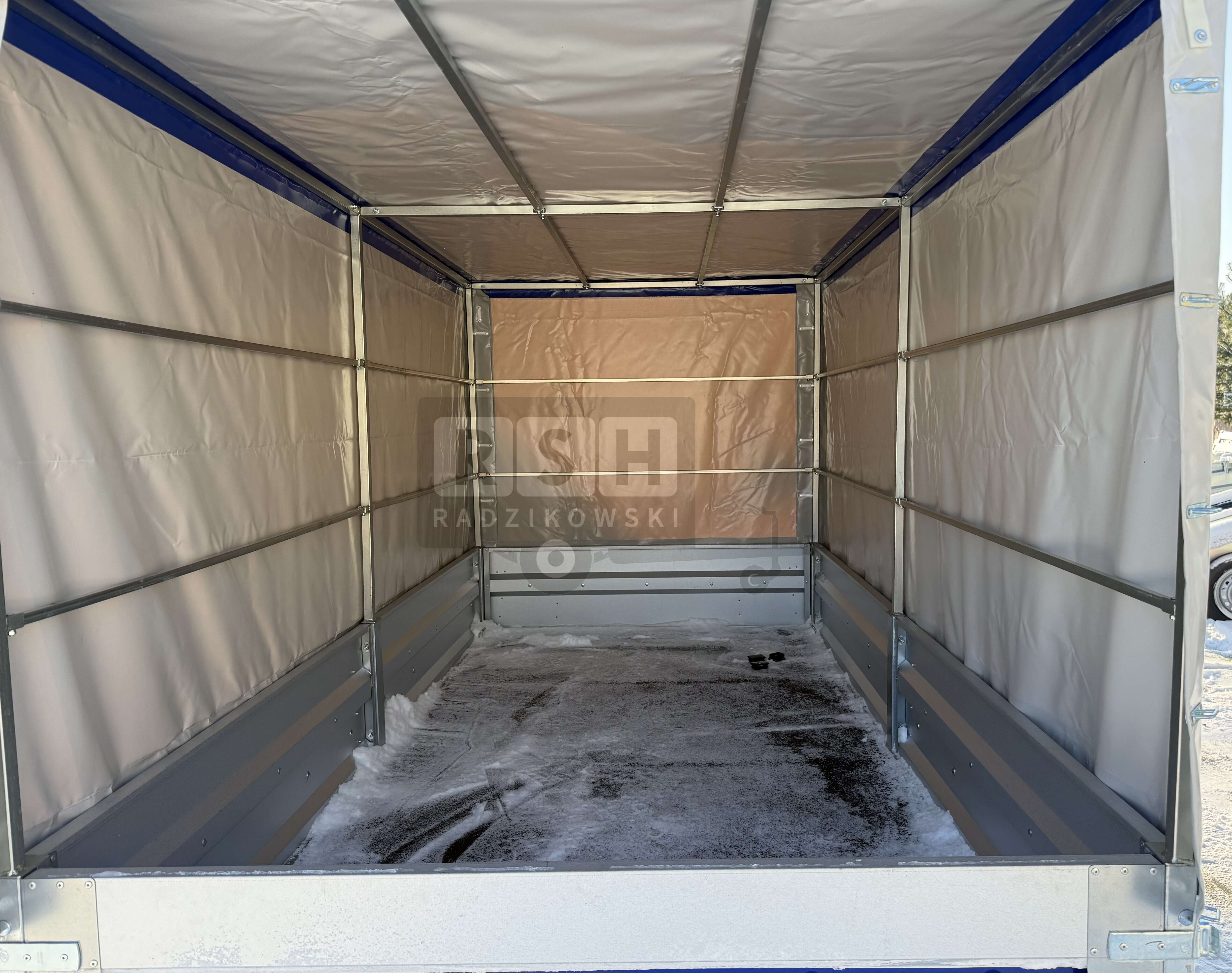 model: Silezia z Plandeką i Stelażem H-150 cm (wymiar liczony od podłogi przyczepy)